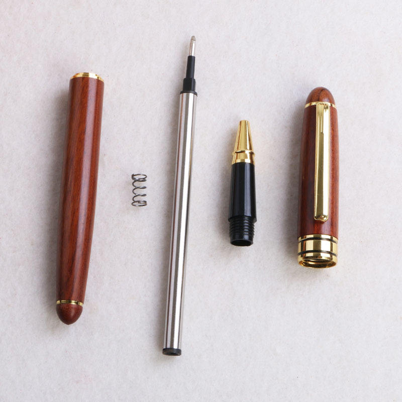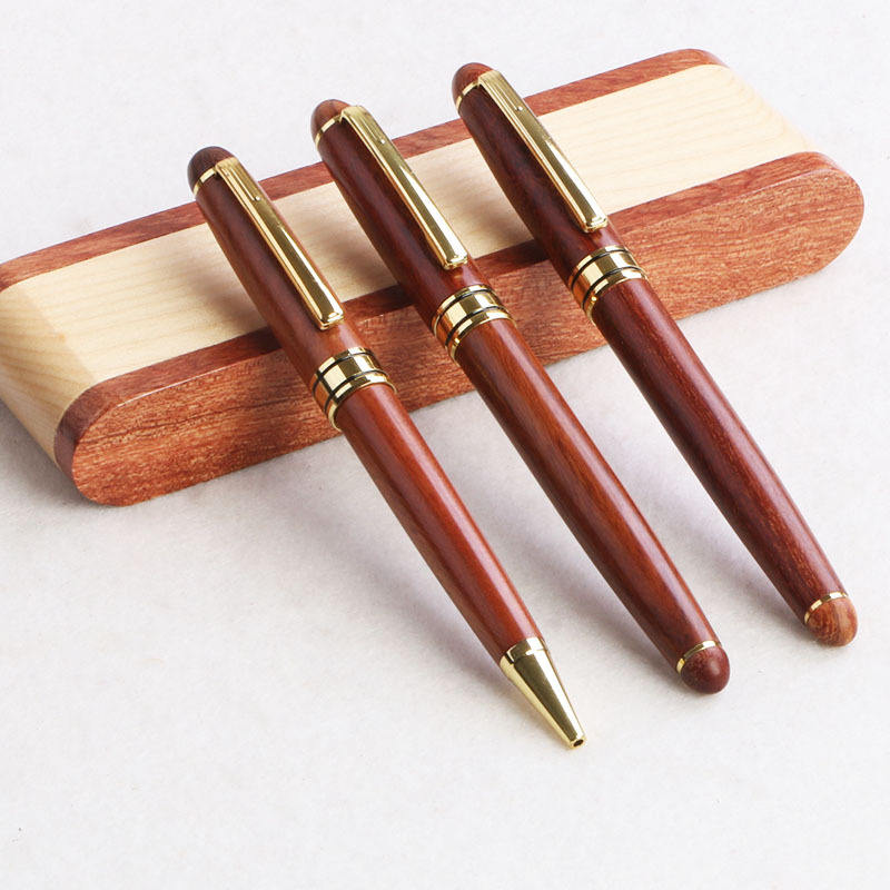 Ensemble de stylos à bille en bambou Signature avec design en bois de rose et branche acide Pointe de 0,7 mm Encre noire Impression promotionnelle Vente en gros