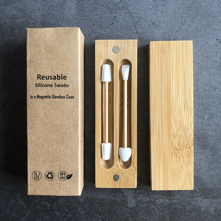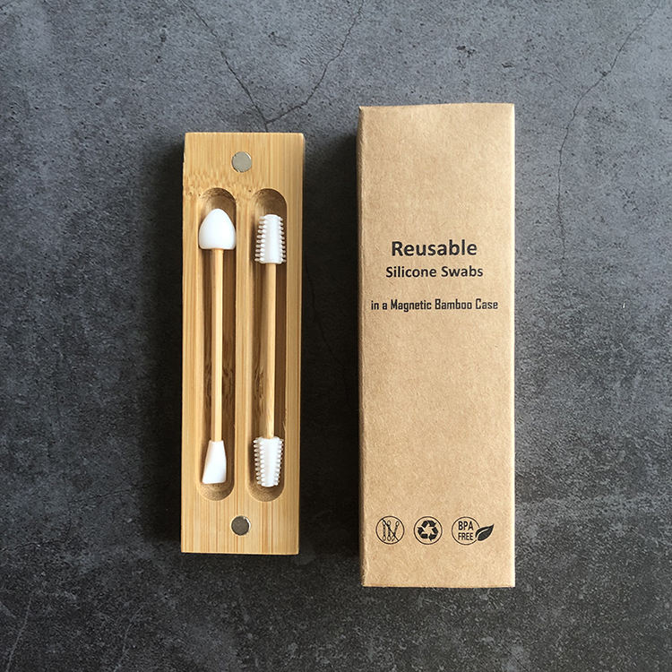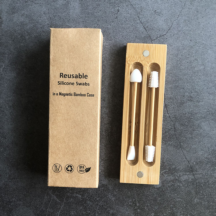 Bâtonnets de bambou réutilisables pour cils, cotons-tiges multifonctionnels en silicone pour les oreilles