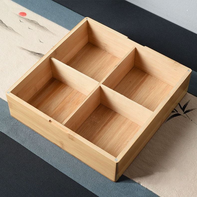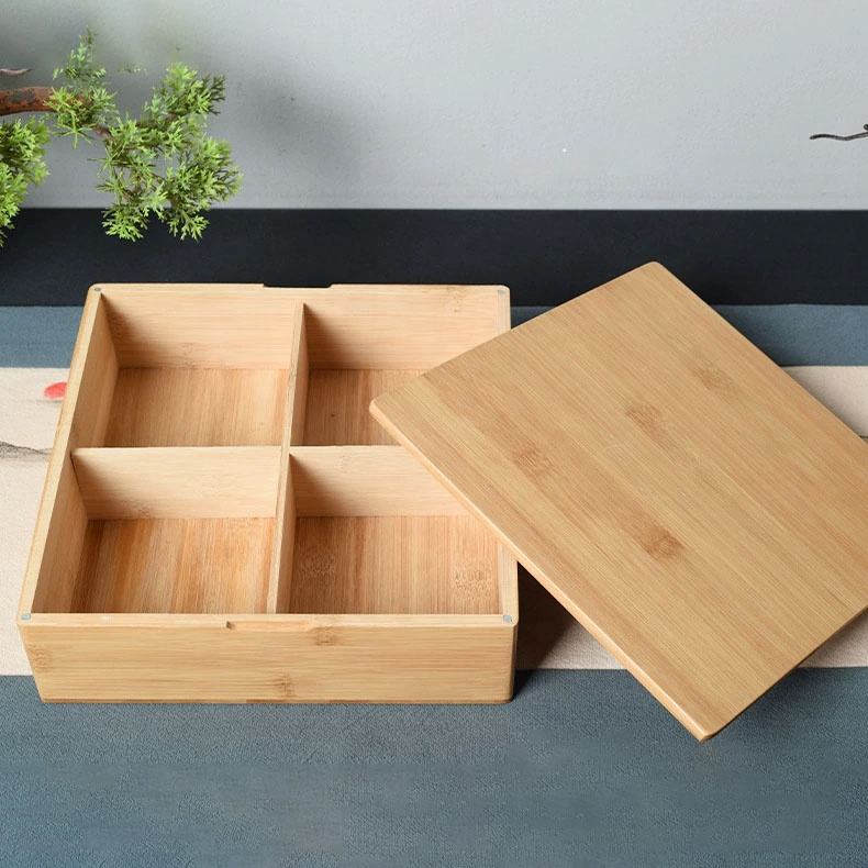 Boîte de rangement en bambou avec couvercle amovible, boîte de rangement combinée, boîte à bijoux avec 4 compartiments
