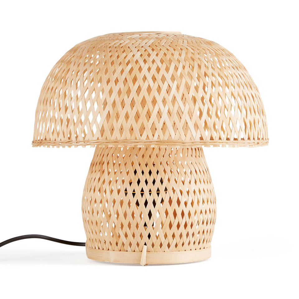 Lampe de table en bambou avec base en bambou tissée Abat-jour en bambou exquis pour lampes de table pour chambre à coucher chevet