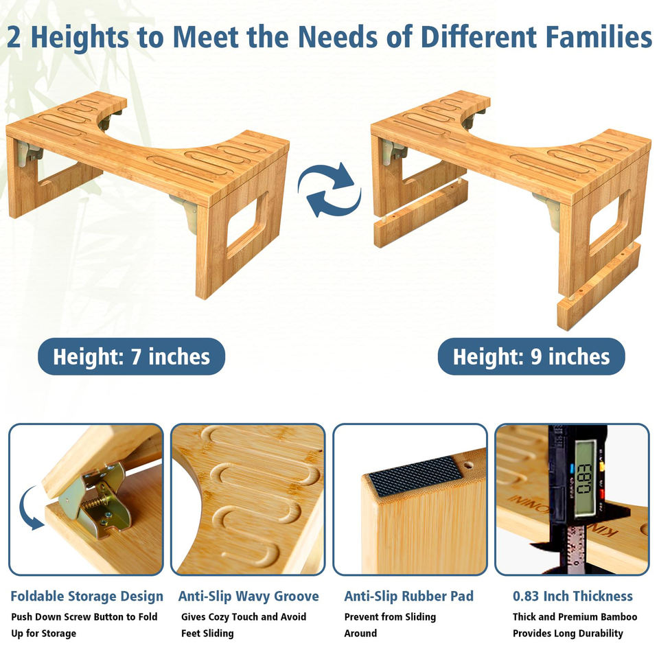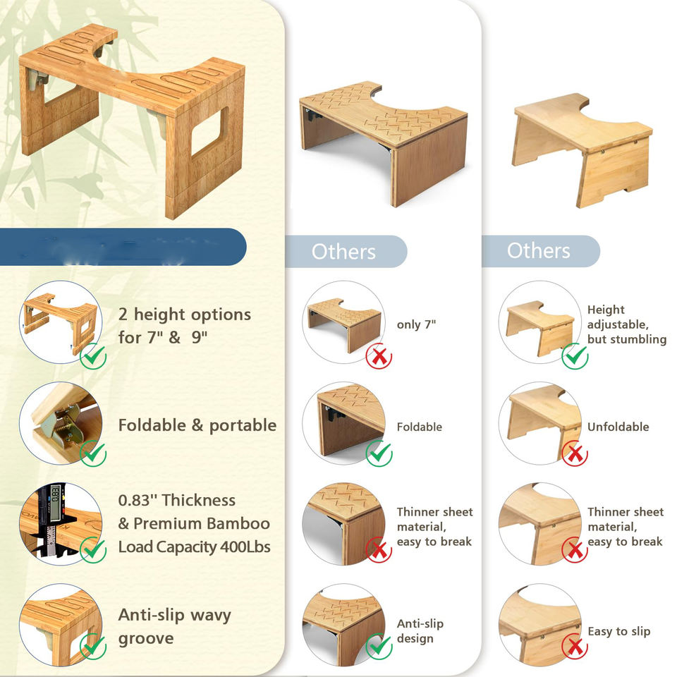 Tabouret de toilette en bambou, hauteur réglable, tabouret pour faire ses besoins, chaise en bois pour améliorer la posture dans la salle de bain, pour adultes et enfants, tabouret pour la propreté