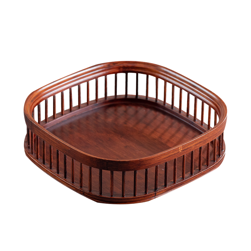 Ensemble de paniers de rangement classiques en bois de bambou, plateau de service pour aliments, panier à fruits décoratif, plateau de service, plateau de petit-déjeuner profond antidérapant