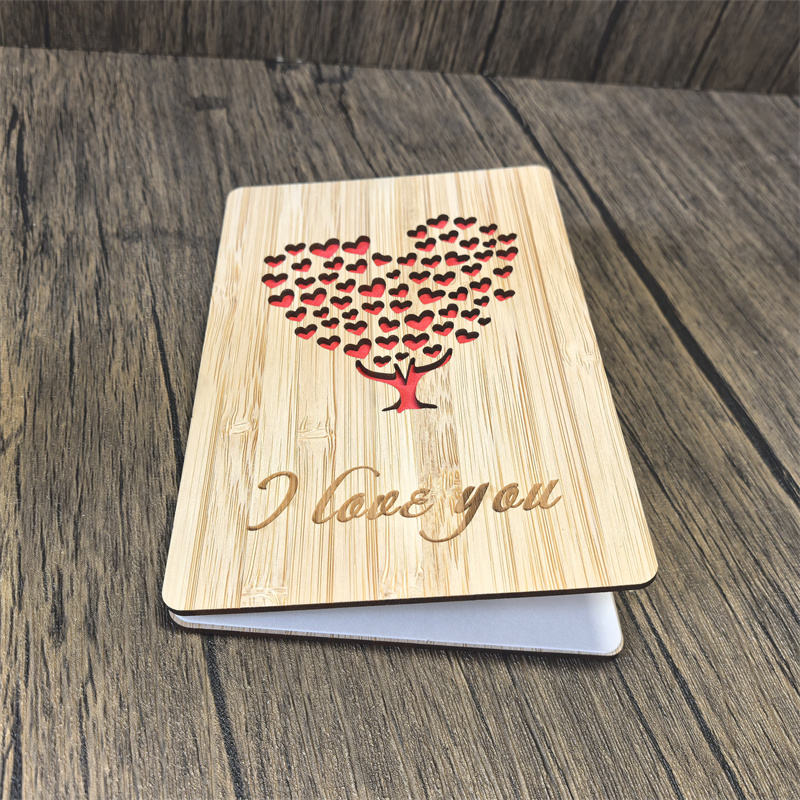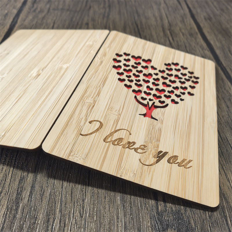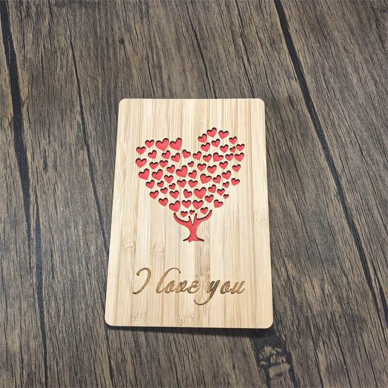 Carte gravée arbre cœur en bois de bambou Love You From Kids cadeau de fête des mères personnalisé fait à la main pour maman femme grand-mère grand-mère