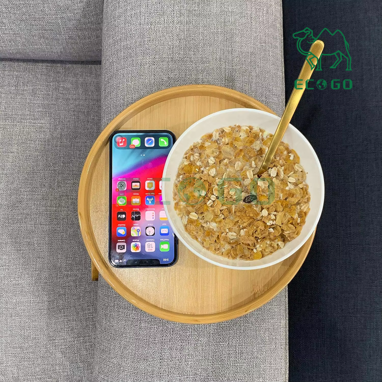Bamboo Wooden Organizer Tray Products Round Wooden Bamboo Sofa Arm Tray for House Couch Use