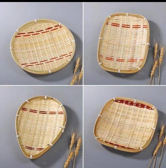 Bamboo Woven Basket Tray Reusable Woven Tray Shallow Food Basket No Hole For Drying Herbs Food Grains Home Kitchen Use
