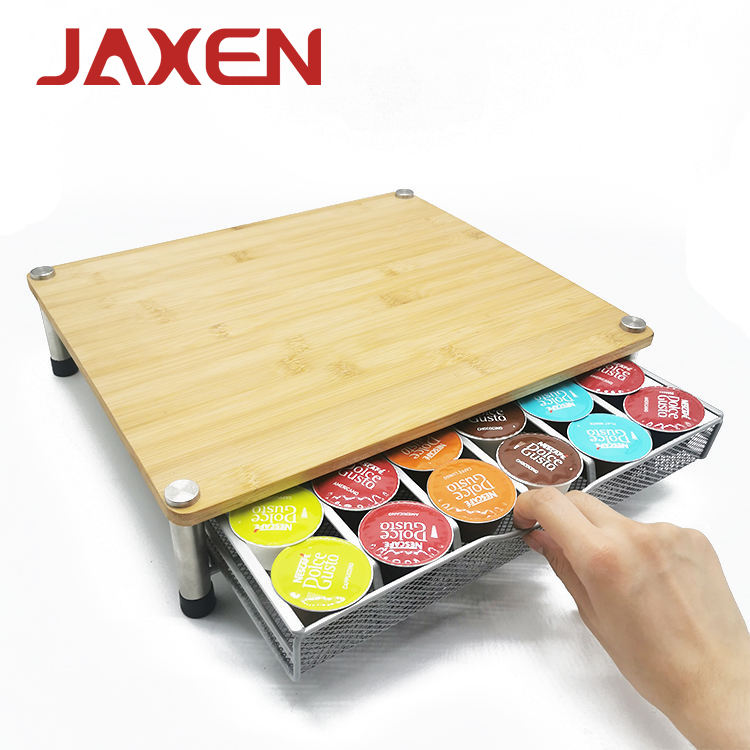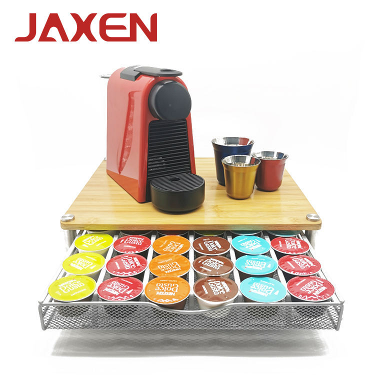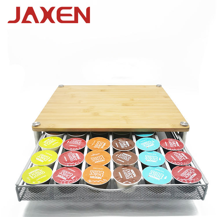 Tiroirs de rangement écologiques en bambou et en métal, 36 pièces, distributeur de capsules de café, compatible avec les capsules Dolce Gusto