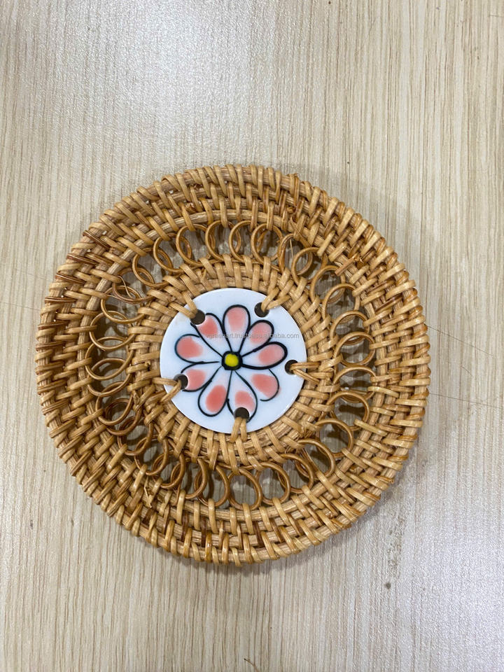 Dessous de verre en bambou et rotin avec motifs, sous-verres en céramique avec bords en rotin pour décoration photo Bemiao, sous-verres, tapis de table à manger
