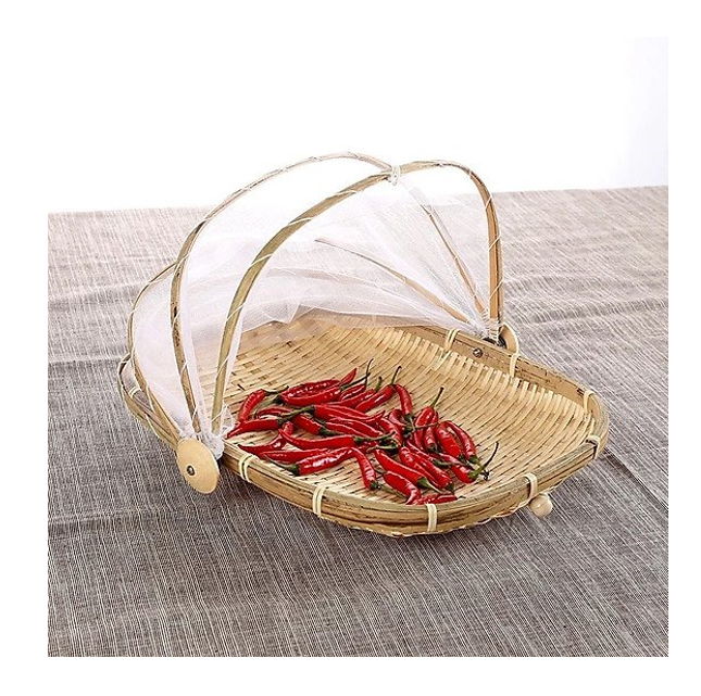 Plateau de vannage en bambou avec couvercle en filet du Vietnam - Plateau tissé en bambou - Produits écologiques - Évitez la poussière lors du séchage au soleil