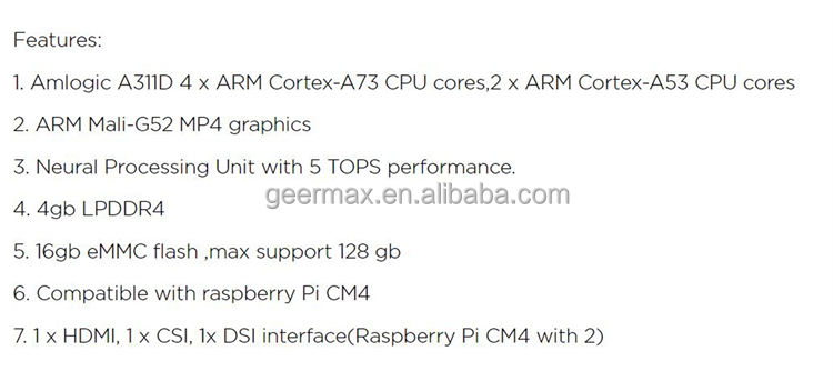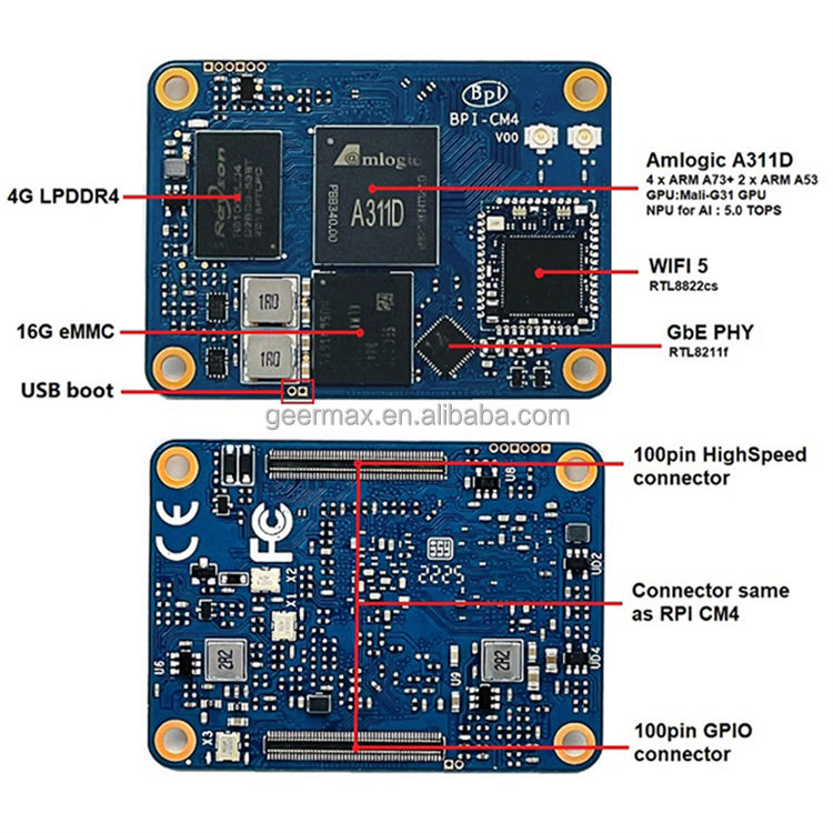 Banana Pi BPI-CM4 4 Go de RAM 16 Go de EMMC A311D A73 4 cœurs 2 cœurs A53 Mali-G52 MP4 WiFi5 WiFi6 Module Carte mère Kit Linux Android OS