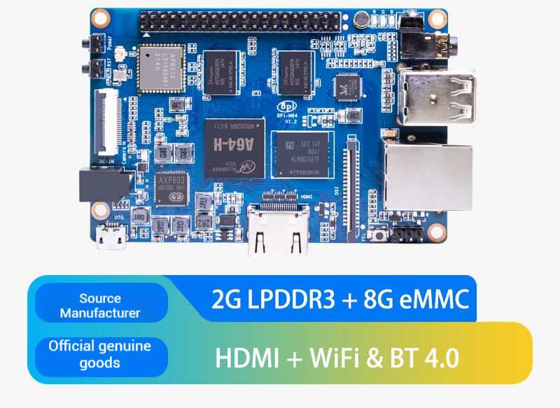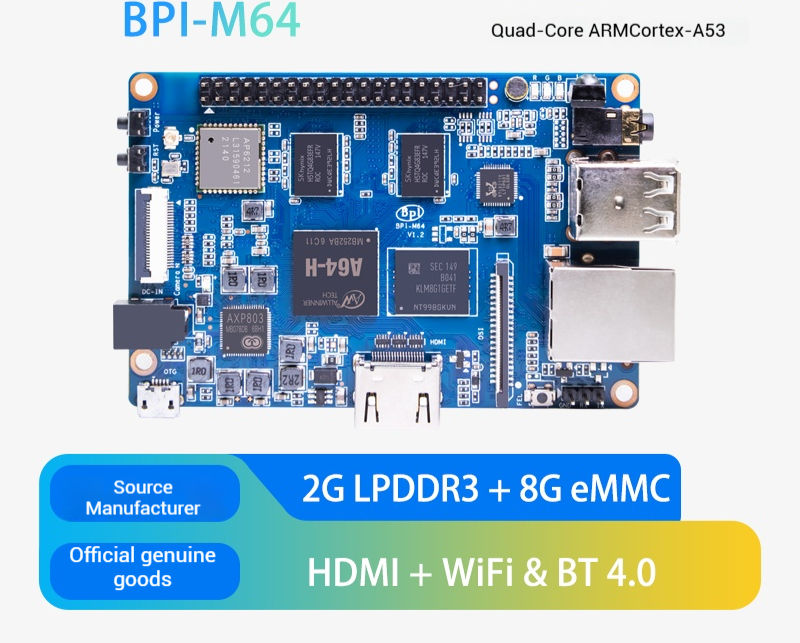 Carte de développement Banana Pi BPI-M64, matériel open source, ordinateur monocarte, processeur Full Star A64 64 bits quadricœur optimisé pour Linux