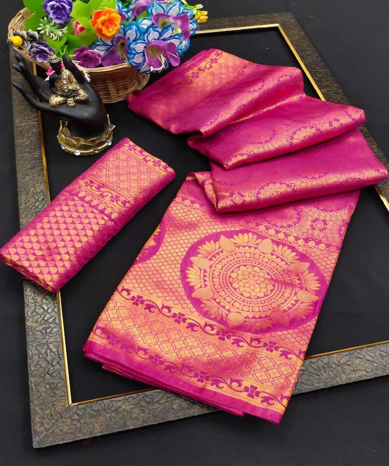 Banarasi Silk Jacquard Saree With Blouse Women Wear Ladies Party Festival Daily Wear Soft Cotton Silk Sari Wholesale Low Price Garment