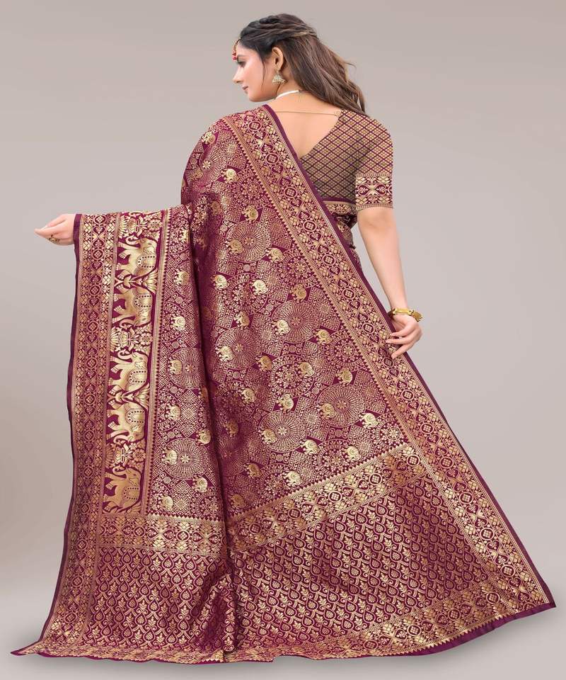 Banarasi Silk Jacquard Saree with Blouse Women Wear Ladies Party Festival Daily Wear Soft Cotton Silk Sari Wholesale Low Price Apparelgarment