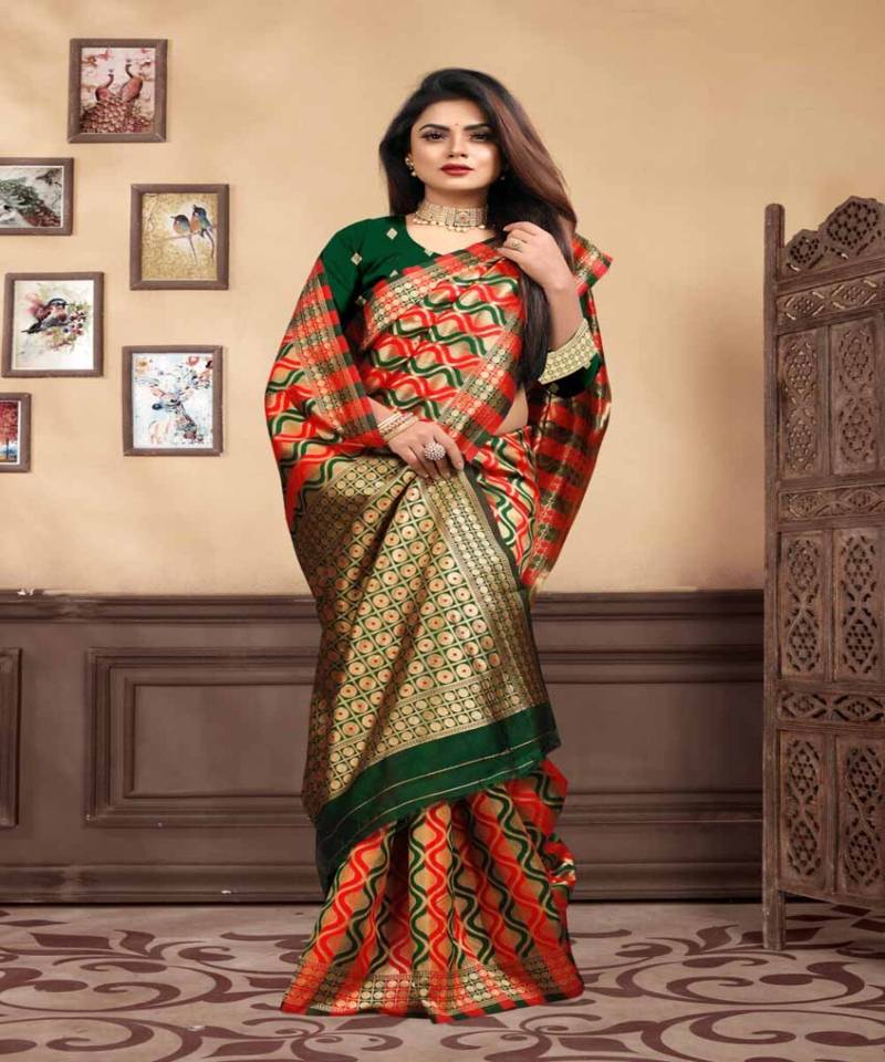 Banarasi Soie Jacquard Saree Avec Chemisier Femmes Porter Dames Fête Festival Usage Quotidien Doux Coton Soie Sari En Gros Bas Prix Vêtements