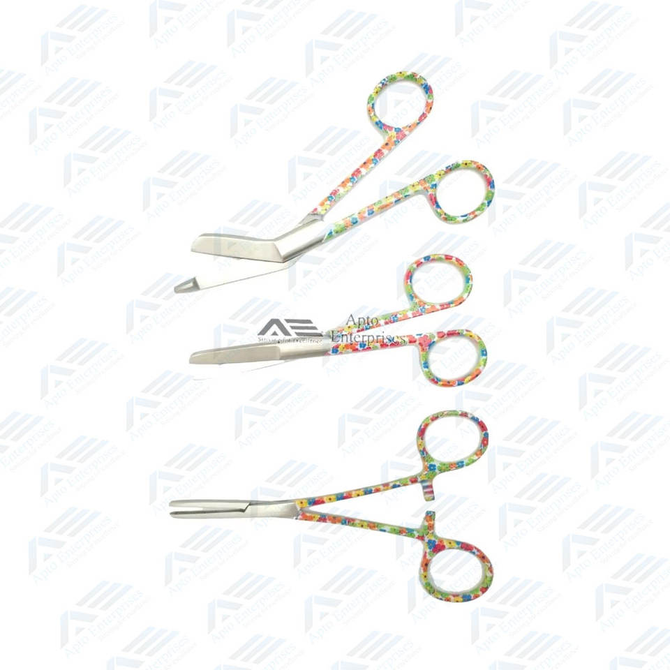 Properties:Set of 3 bandage scissors dressing scissors and forcep