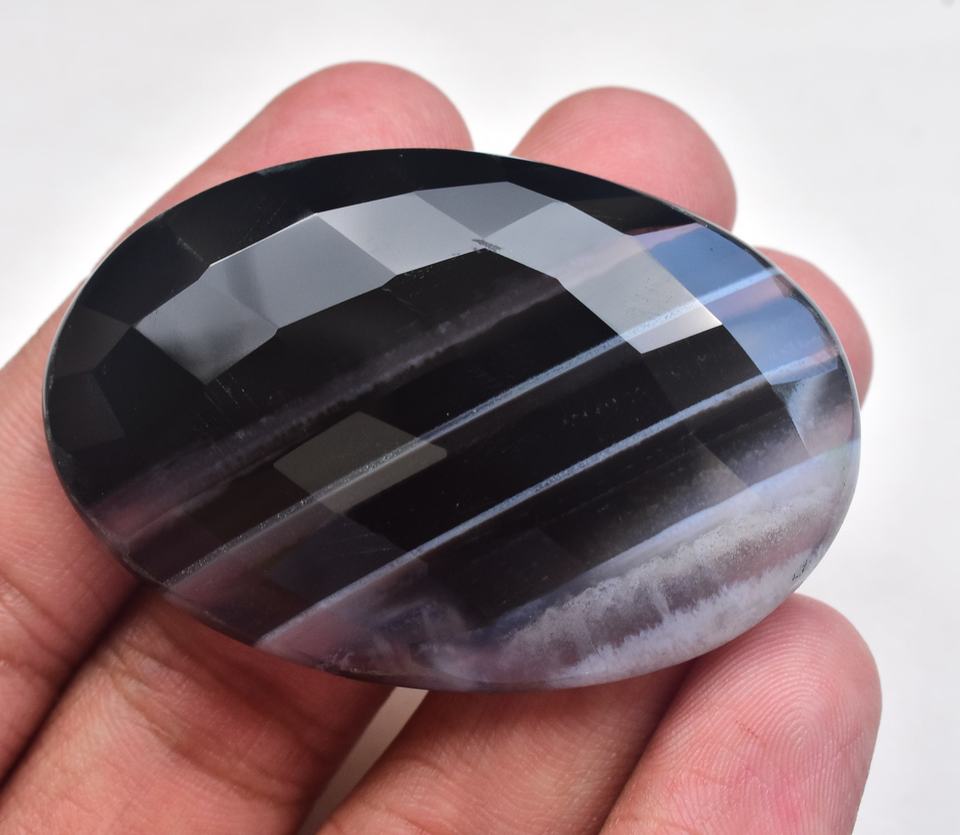Perles de pierres précieuses naturelles en agate rayée et sardonyx multicouche, cabochons de haute qualité, 20-50 mm, noires, pour la fabrication de bijoux