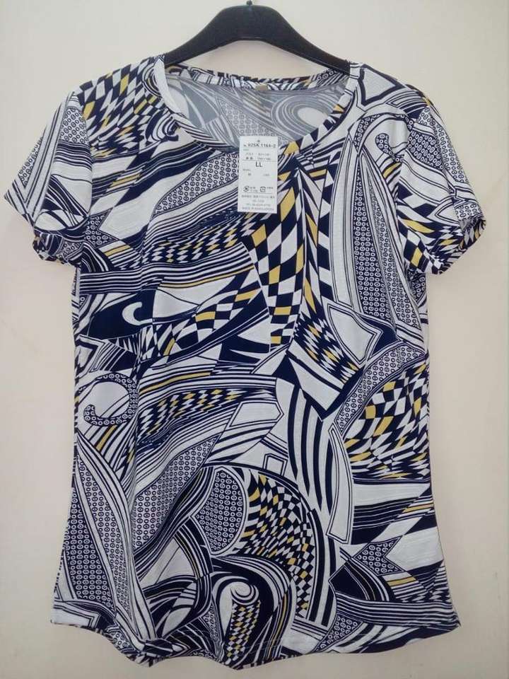 Lot de t-shirts décontractés à manches courtes et col rond pour femmes, en coton, imprimés, de marque, pour le bureau ou les affaires, provenant du Bangladesh.