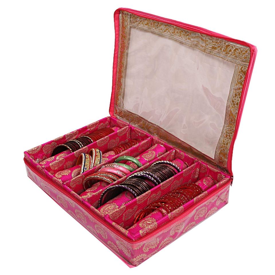 Boîte à bracelets pour femmes, boîte de rangement de bracelets en Brocade à 5 tiges, boîte de rangement pour faveurs de la mariée Chuda avec plateau Transparent pour mariage