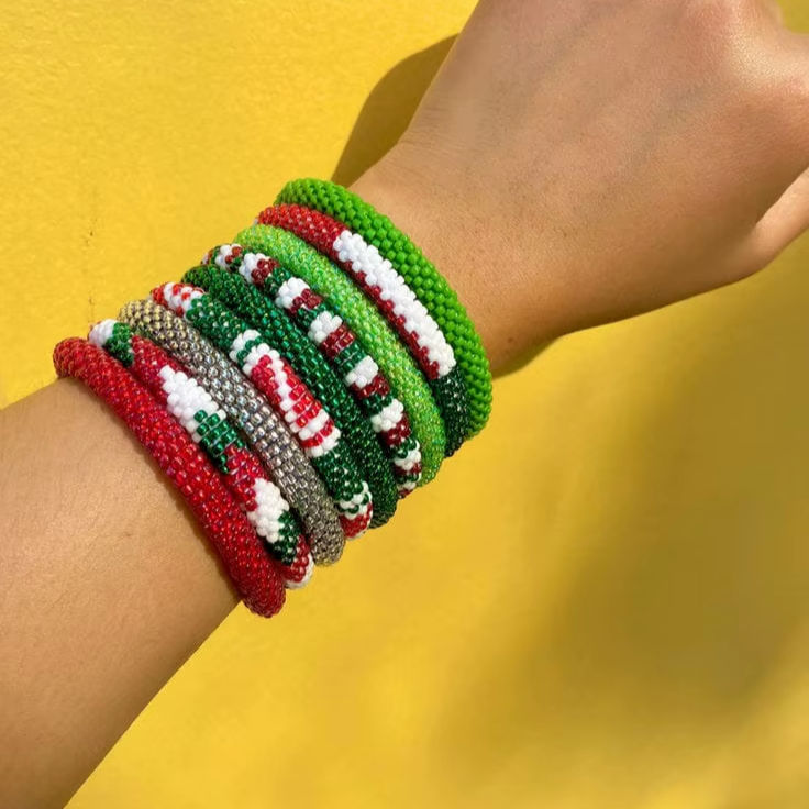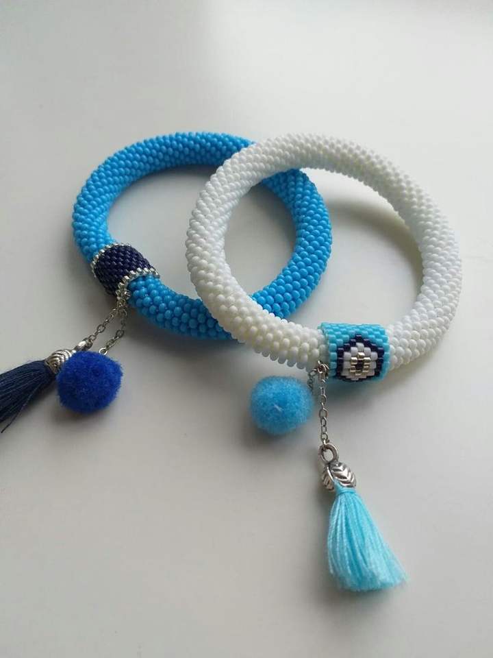 Bracelet jonc tubulaire tressé en corde pour femme, accessoire de bijouterie fantaisie pour usage quotidien ou soirée, fait main en perles de verre et crochet