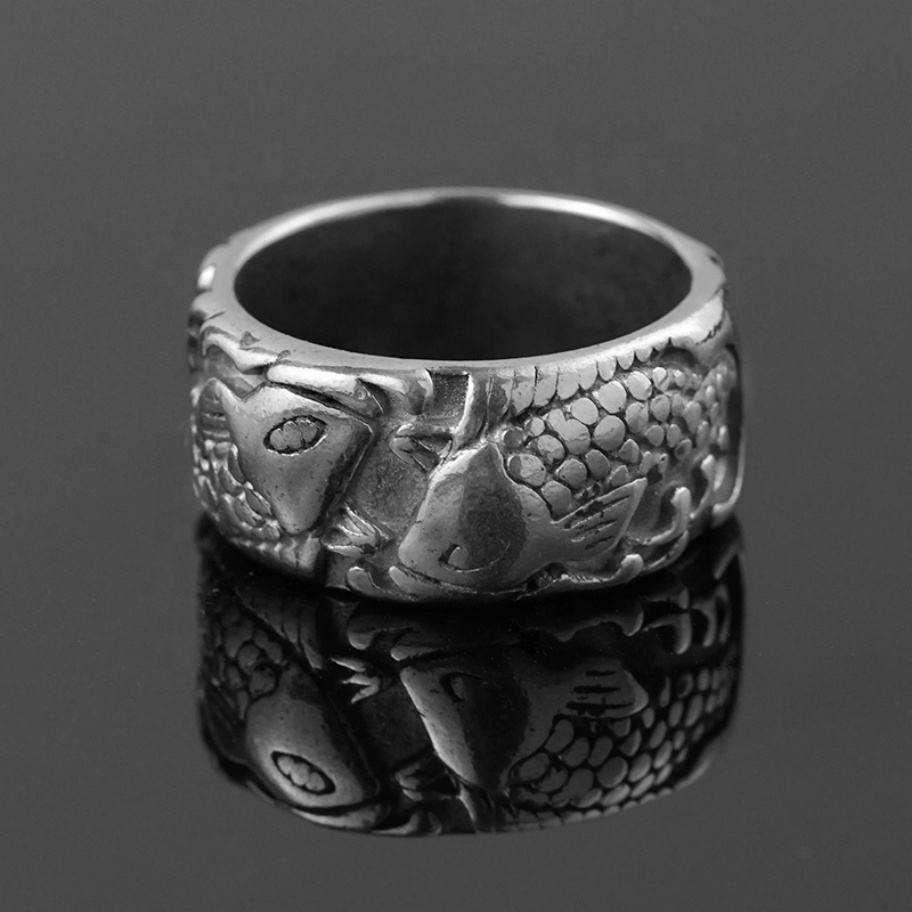 Bracelets Joncs et Bagues pour Fille, Ensembles de Bijoux en Acier Inoxydable avec Breloques, Design 3D Animal Poisson Carpe, Accessoires Traditionnels Porte-Bonheur