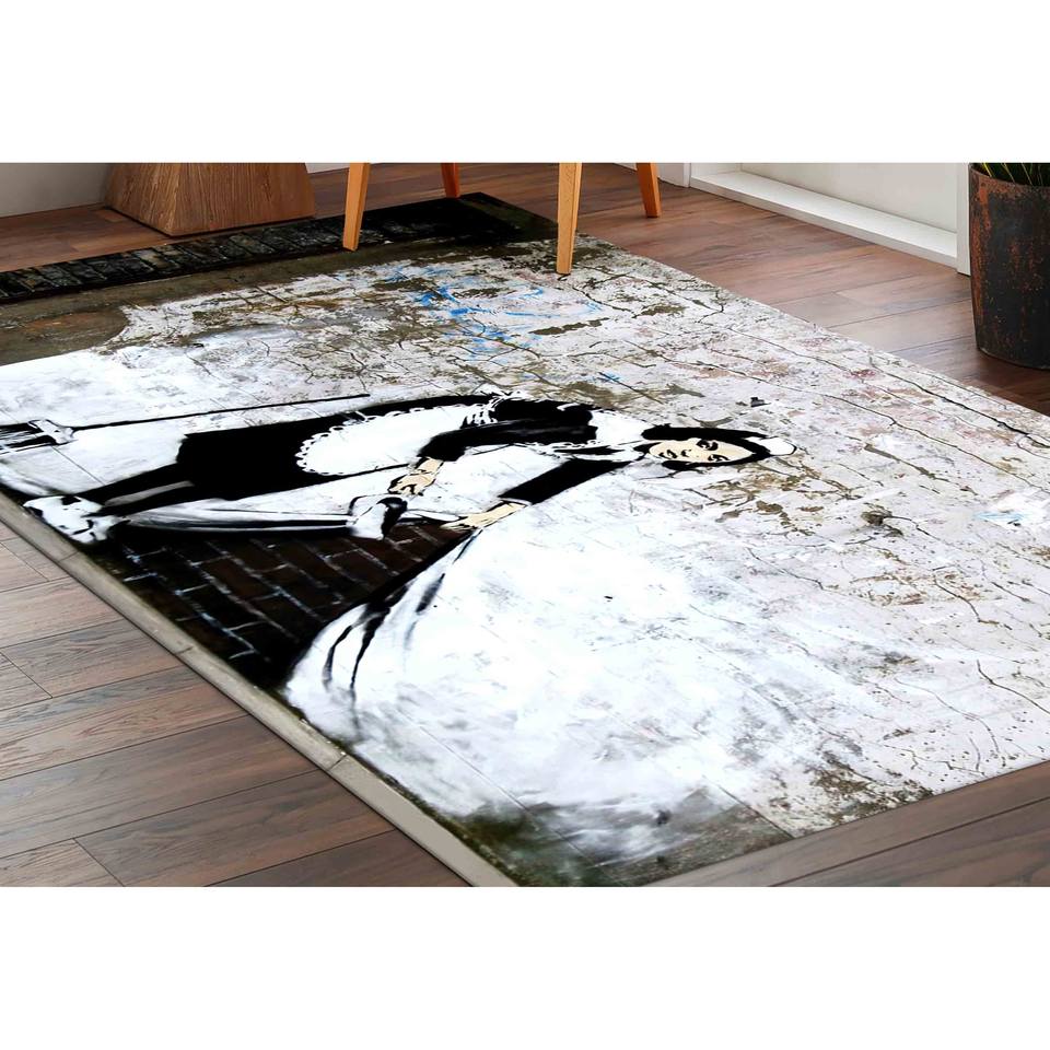 Tapis en laine patchwork style graffiti Banksy, écologique, traditionnel, antidérapant, imprimé en chenille avec envers en latex
