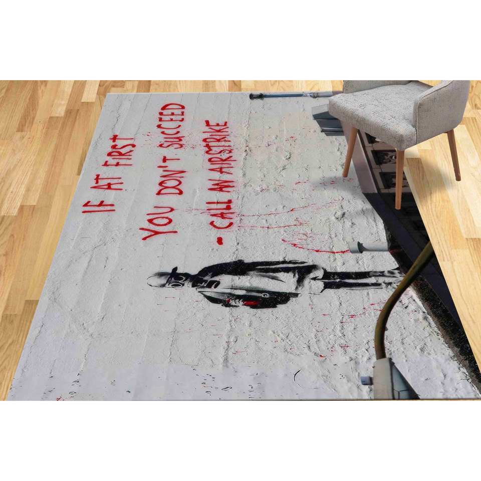 Tapis graffiti Banksy : "Call an Airstrike" – Tapis décoratif imprimé en 3D, tapis en chenille