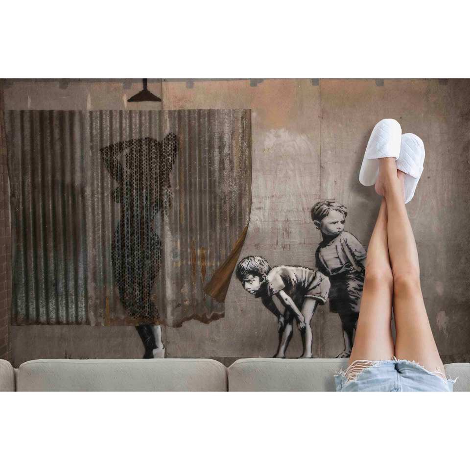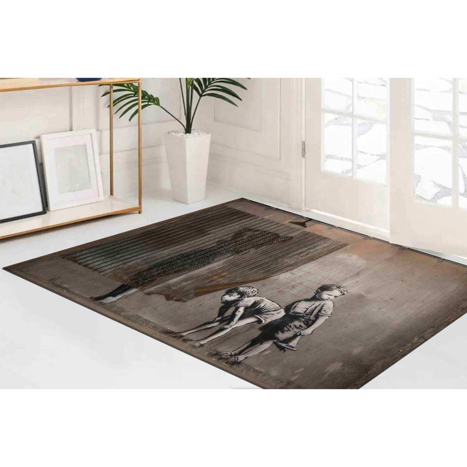Tapis artistique Banksy Lady Shower : tapis antidérapant imprimé en 3D, tapis fin non tissé