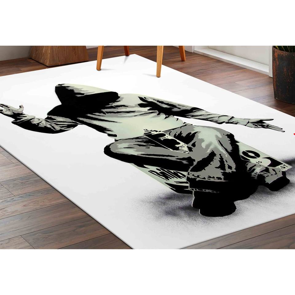 Tapis Banksy : Tapis imprimé avec l'art du graffiti 'Love or Money', tapis fin non tissé