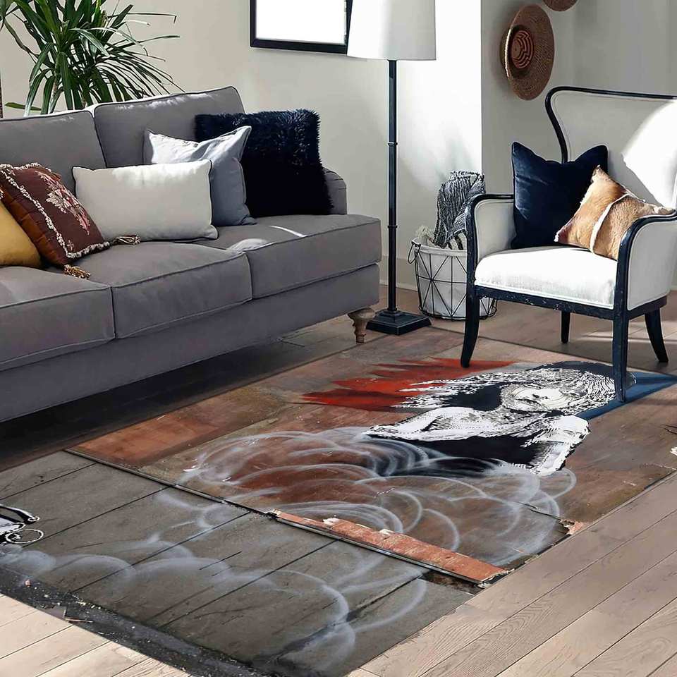 Tapis Banksy 'Les Miserables' : Tapis antidérapant imprimé en 3D, avec poils doux