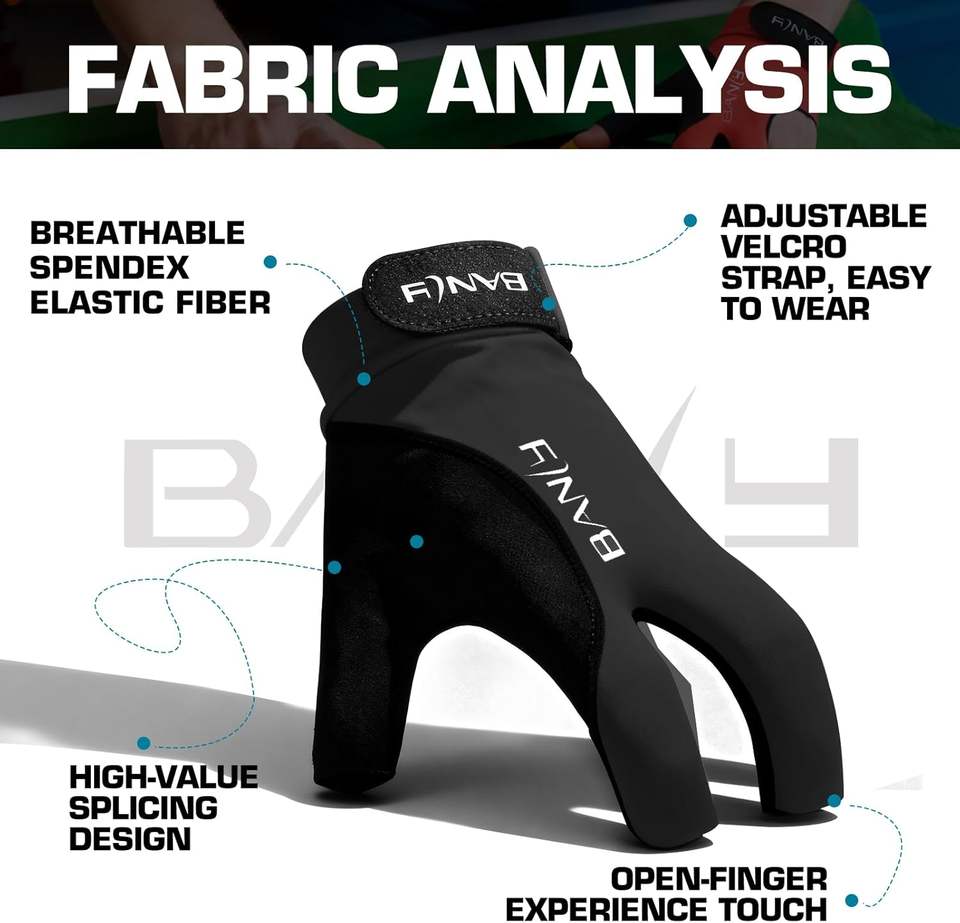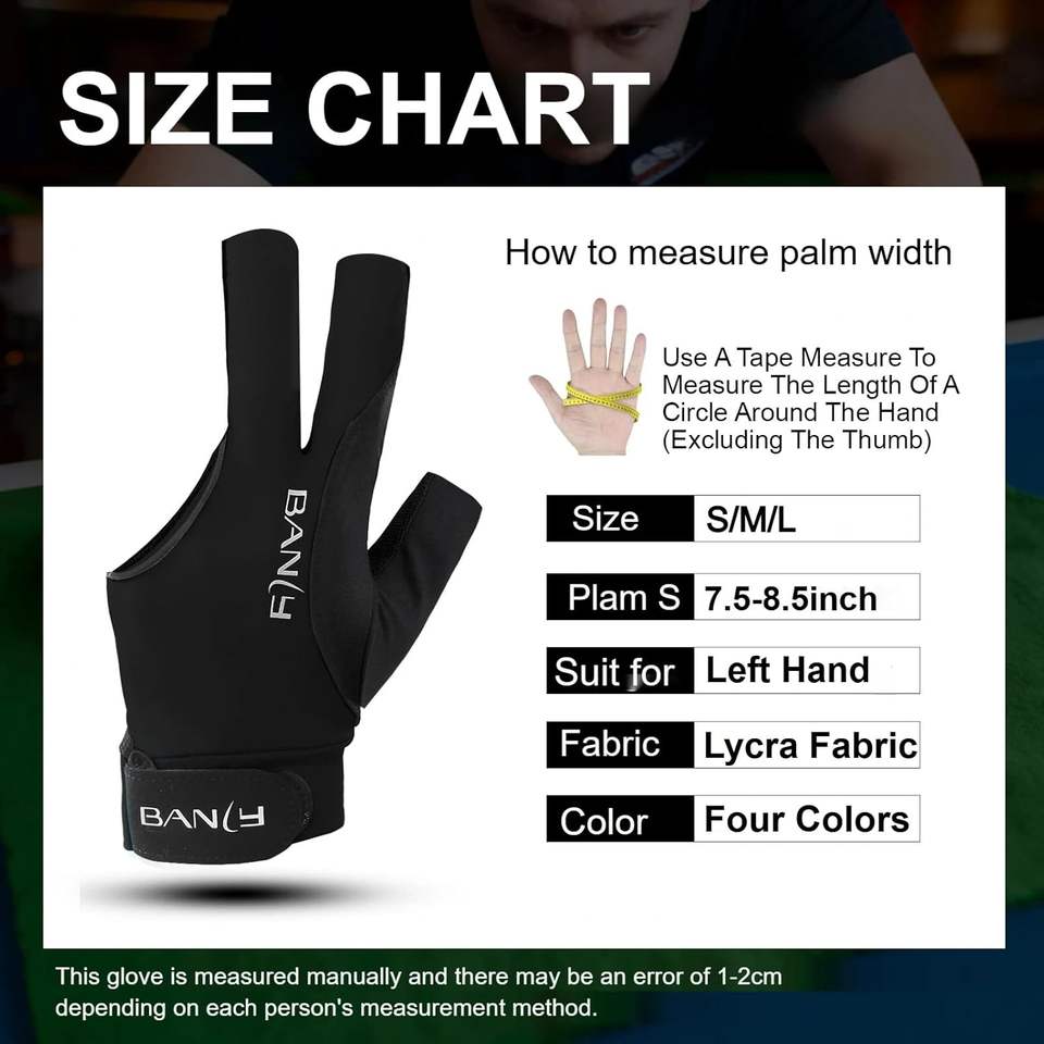 Gants de billard Banly pour main gauche, 3 doigts, gants de snooker, gants de billard sportifs compacts à enfiler