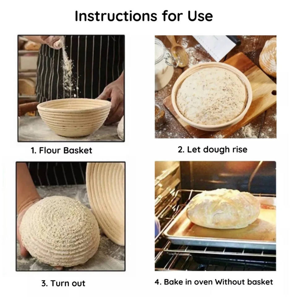 Panier à pain Banneton, paniers ronds et ovales au levain de 9 pouces et de 10 pouces, doublures, cuisson à la maison