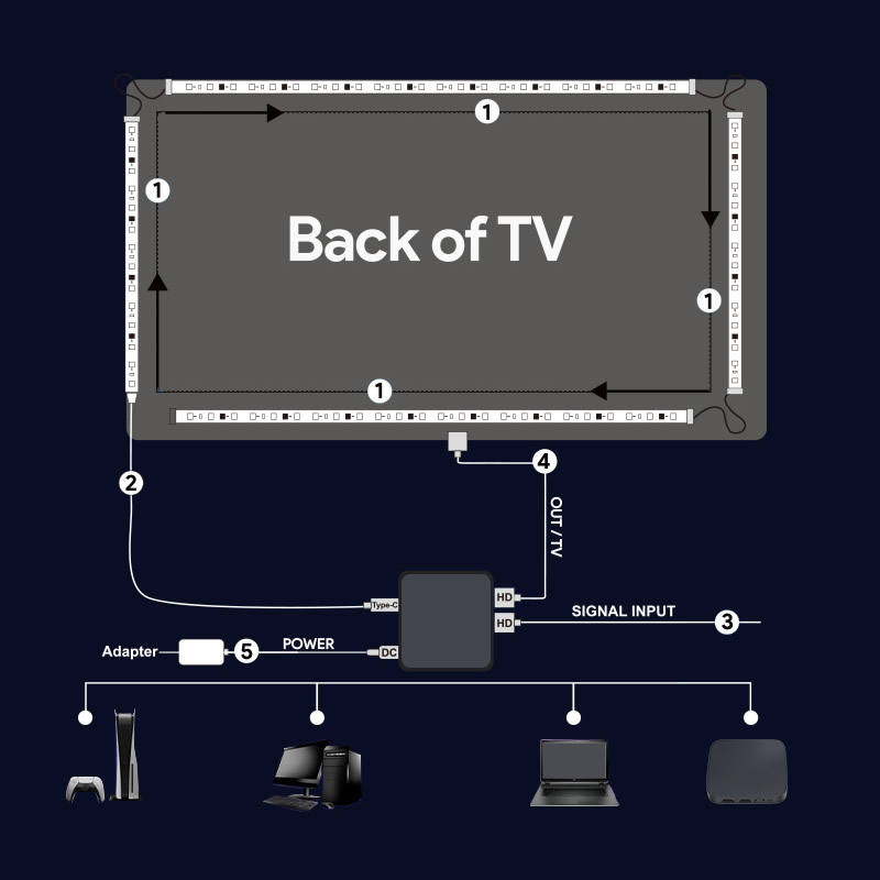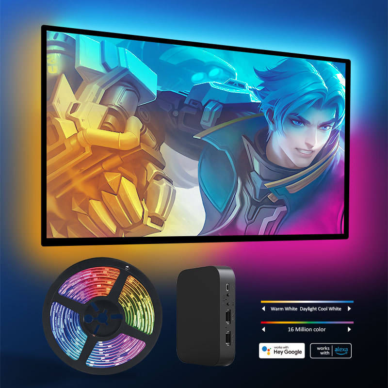 Banqcn Smart LED rétro-éclairage 4K 30Hz Sync Box 16.4ft RGB bande lumineuse 55-85 pouces téléviseurs synchronise écran musique RGBIC couleur