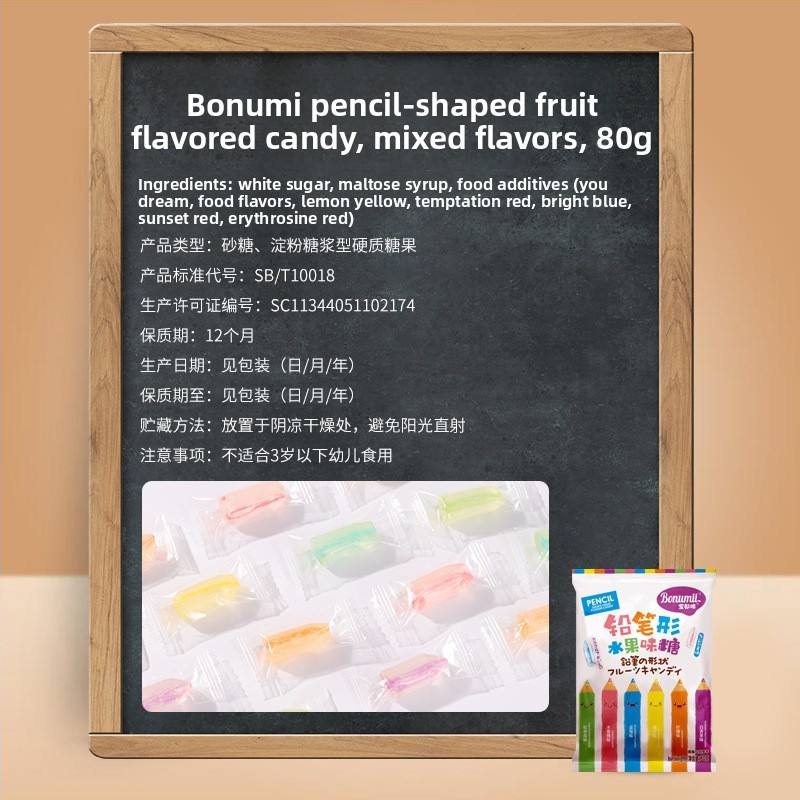 Crayons de couleur Baonuimi, bonbons amusants, bonbons aux fruits mélangés, collations nostalgiques 80g pour les élèves du primaire