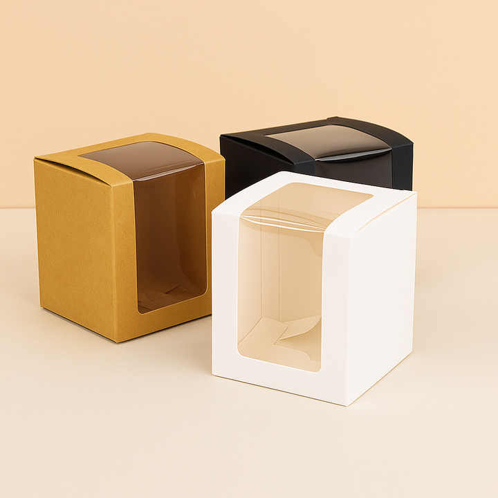 Boîte en carton rectangulaire avec fenêtre, boîte d'emballage noire, boîte d'emballage pour bougies parfumées, en stock, directement de l'usine Baoren