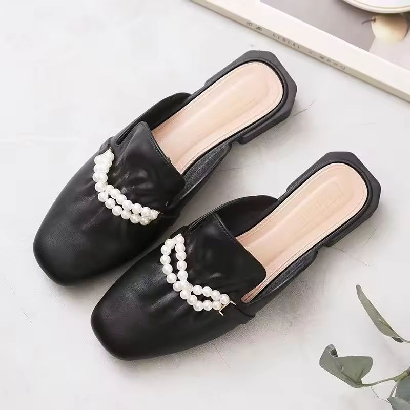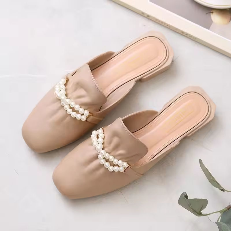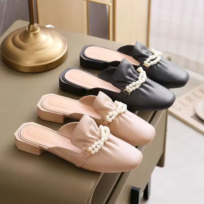 Sandales coréennes tendance printemps-automne Baotou Pearl, demi-chaussons pour femmes, style plateforme, chaussures décontractées populaires sur les réseaux sociaux