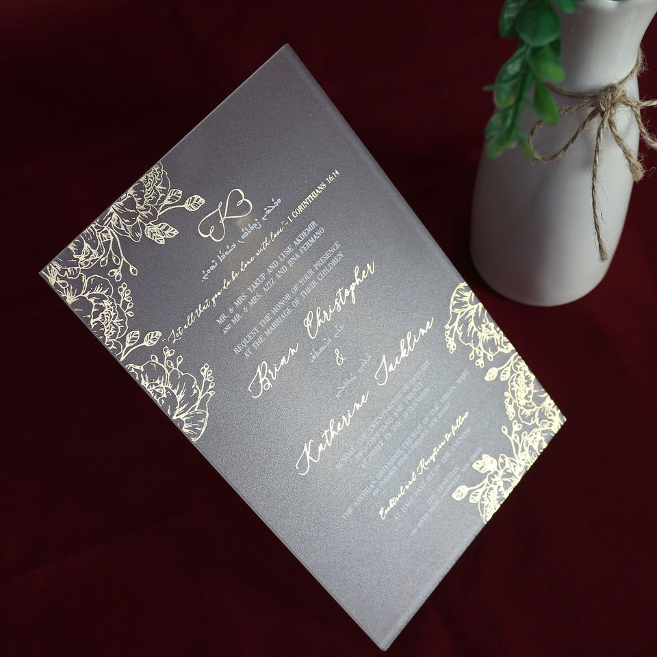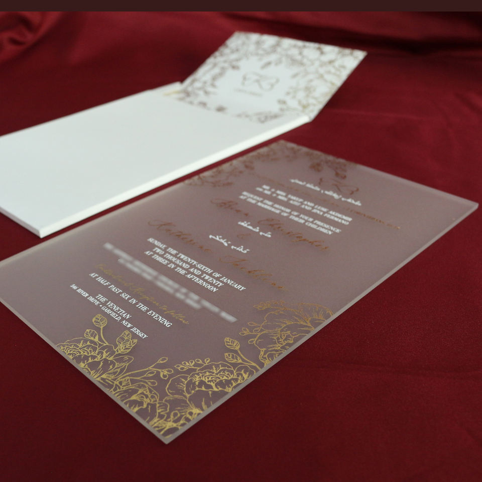 Baptism Acrylic Wedding Invitation Card White and Gold Color Frosted Acrylic Invites