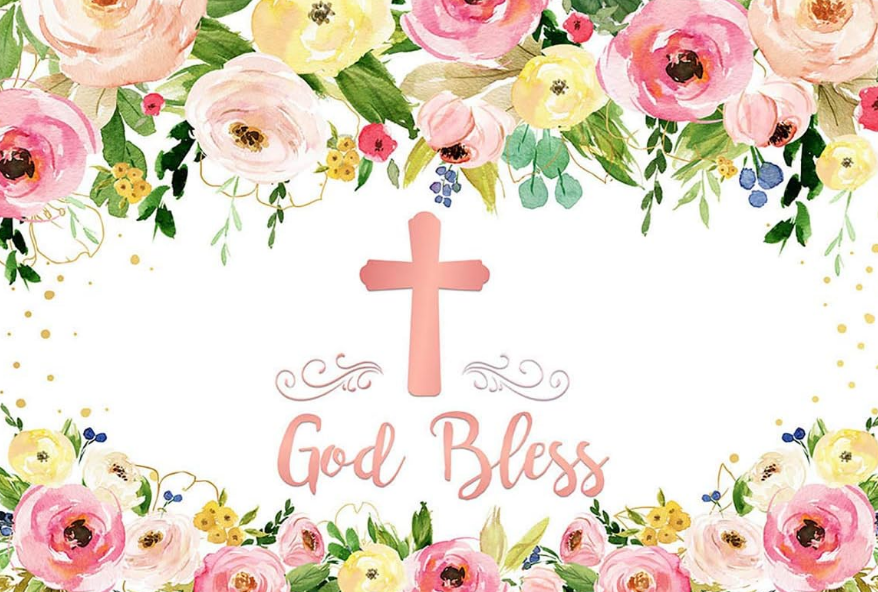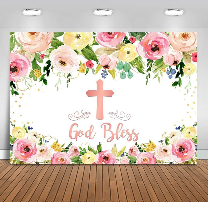 Baptême toile de fond première Sainte Communion fond pour la photographie fille baptême Floral Rose dieu dieu bénisse anniversaire papier peint
