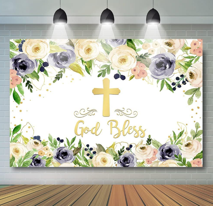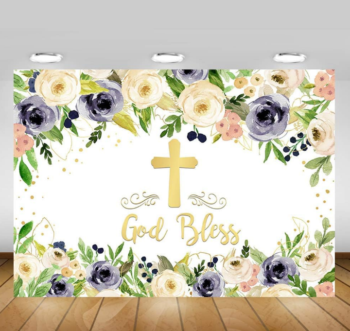 Baptême toile de fond première sainte Communion fond pour photographie garçon baptême blanc marine Floral dieu bénisse anniversaire papier peint