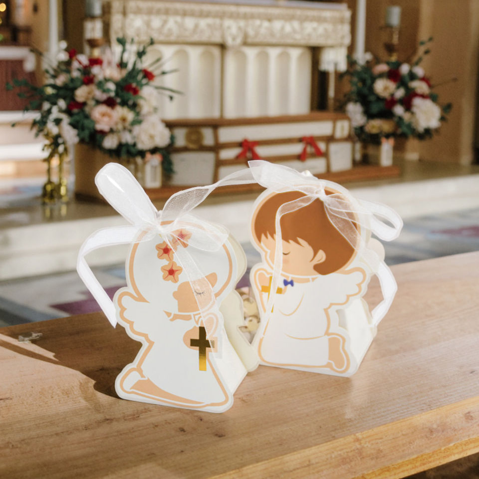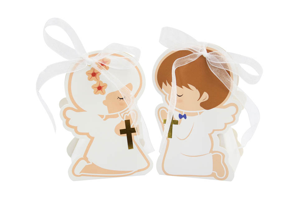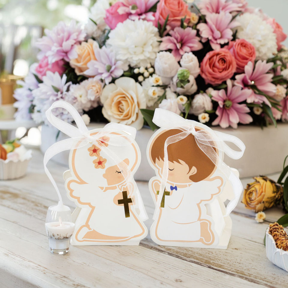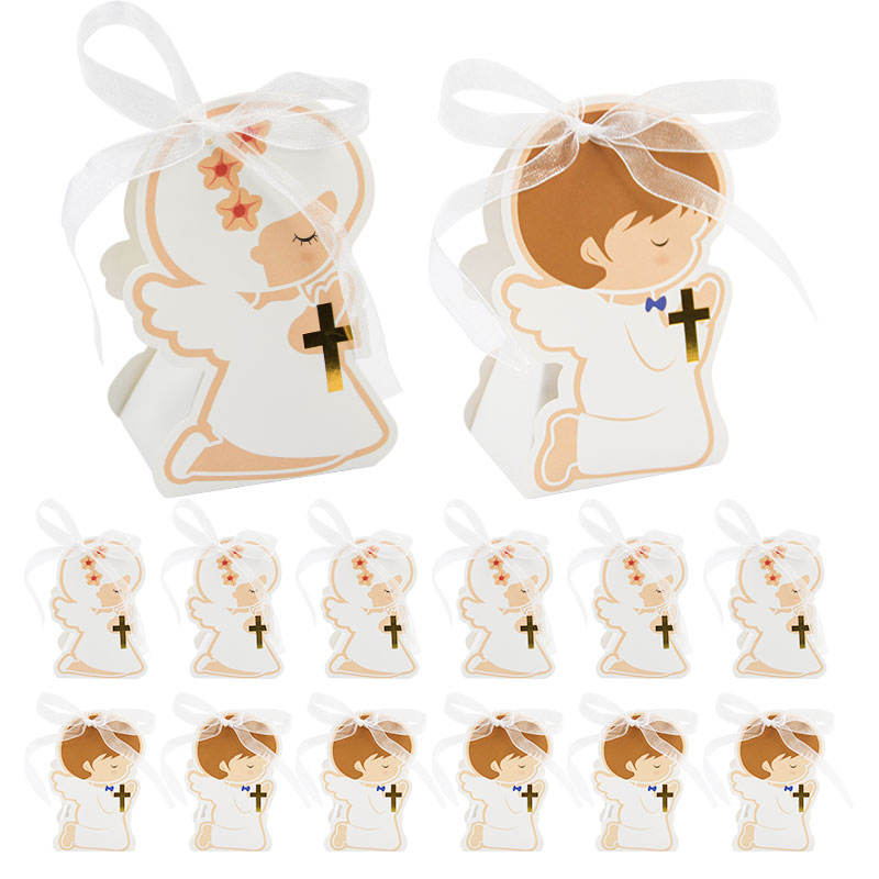 Petites Boîtes en Papier Thème Baptême pour Friandises avec Rubans, Cadeaux de Fête pour Baptême et Première Communion