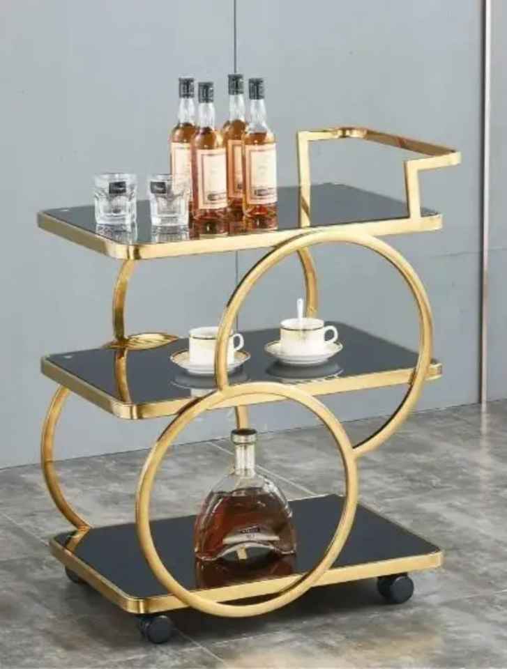 Chariot de bar avec structure métallique, étagères miroir, chariot de service mobile à deux niveaux, mobilier de bar élégant pour la maison, organisateur décoratif