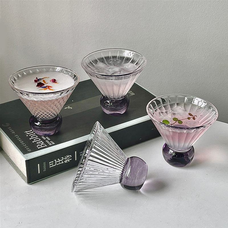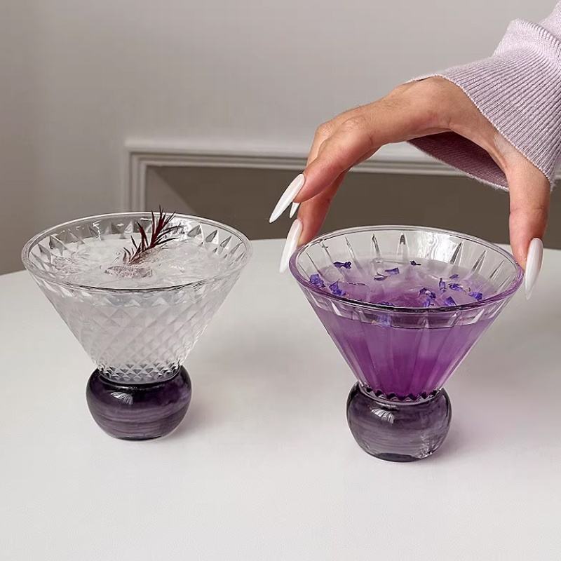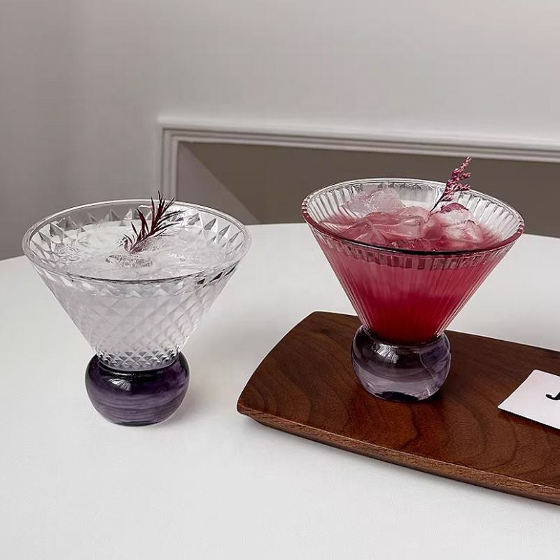Product Name:Purple Round Base Triangular Ribbed Martini Margarita Cocktail Glass