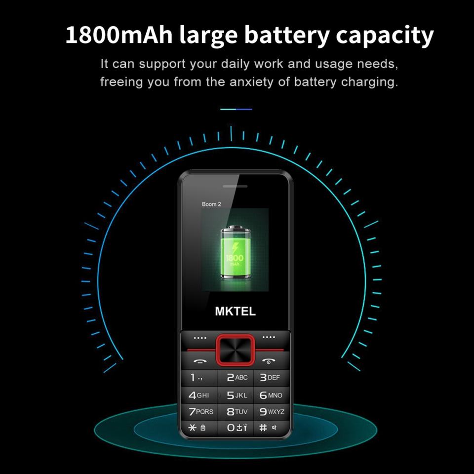 Téléphone portable classique avec fonction barre de touches, 32 Mo de ROM + 32 Mo de RAM, MP3/MP4/Radio FM/BT/GPRS, prise jack 3,5 mm, lampe torche, enregistrement