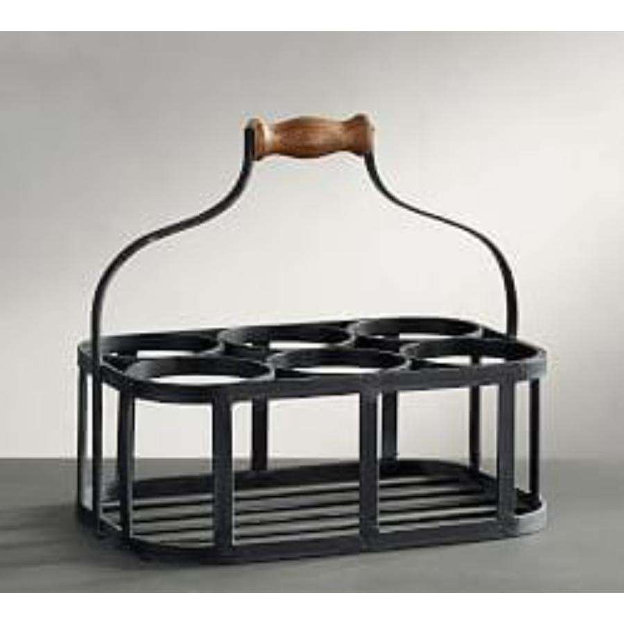 Plateau de service de barre et support Portable fil de fer fabriqué en métal Champagne Caddy noir enduit fini 6 colonnes support de bouteille Caddy