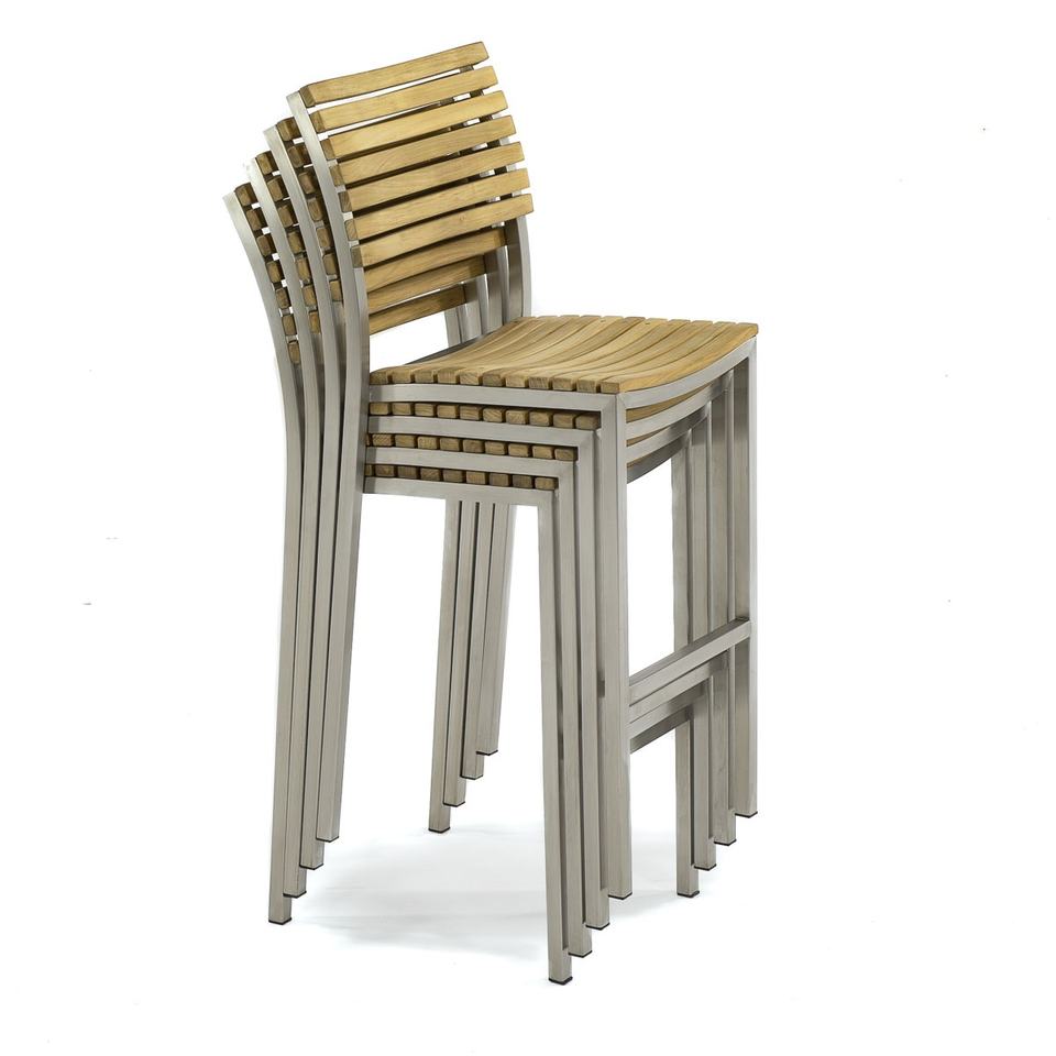 Tabouret de bar-Combinaison de teck en acier inoxydable, ensembles de restaurant de meubles modernes, meubles de bar à la maison fabriqués en Indonésie