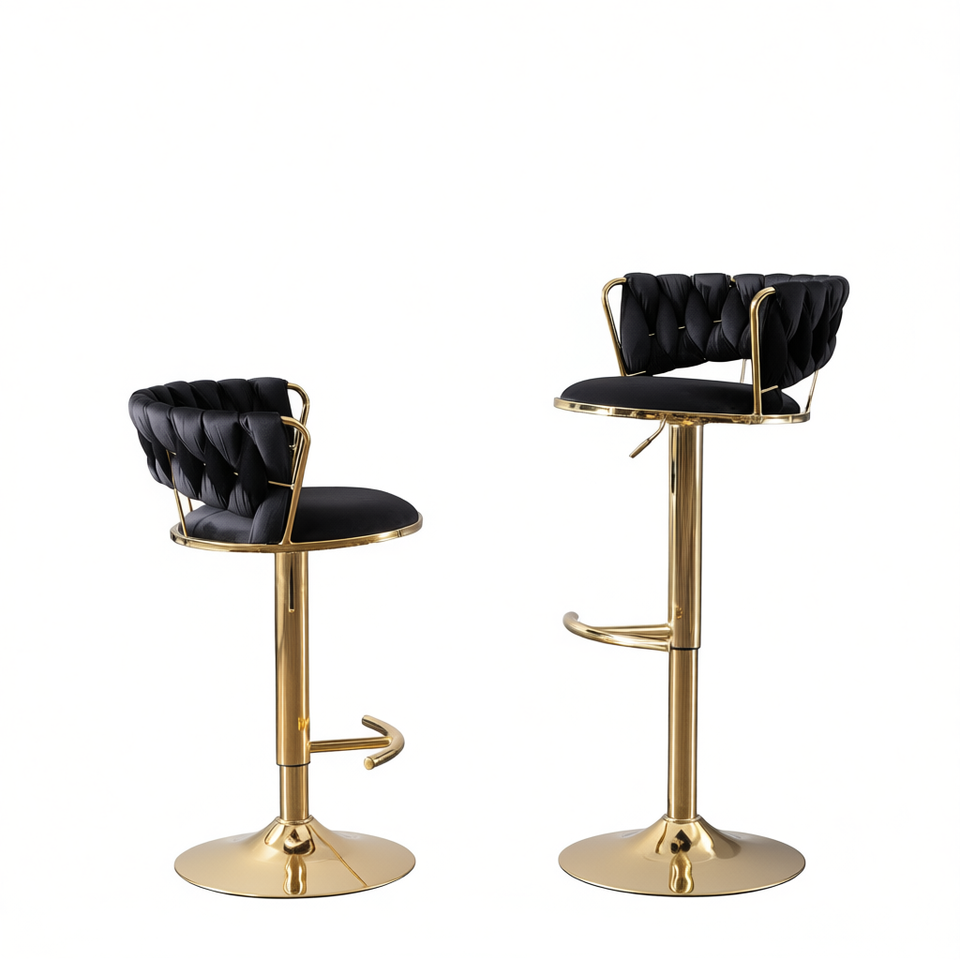 Ensemble de 2 tabourets de bar en velours noir, siège pivotant réglable en hauteur, cadre doré, design contemporain, mobilier commercial