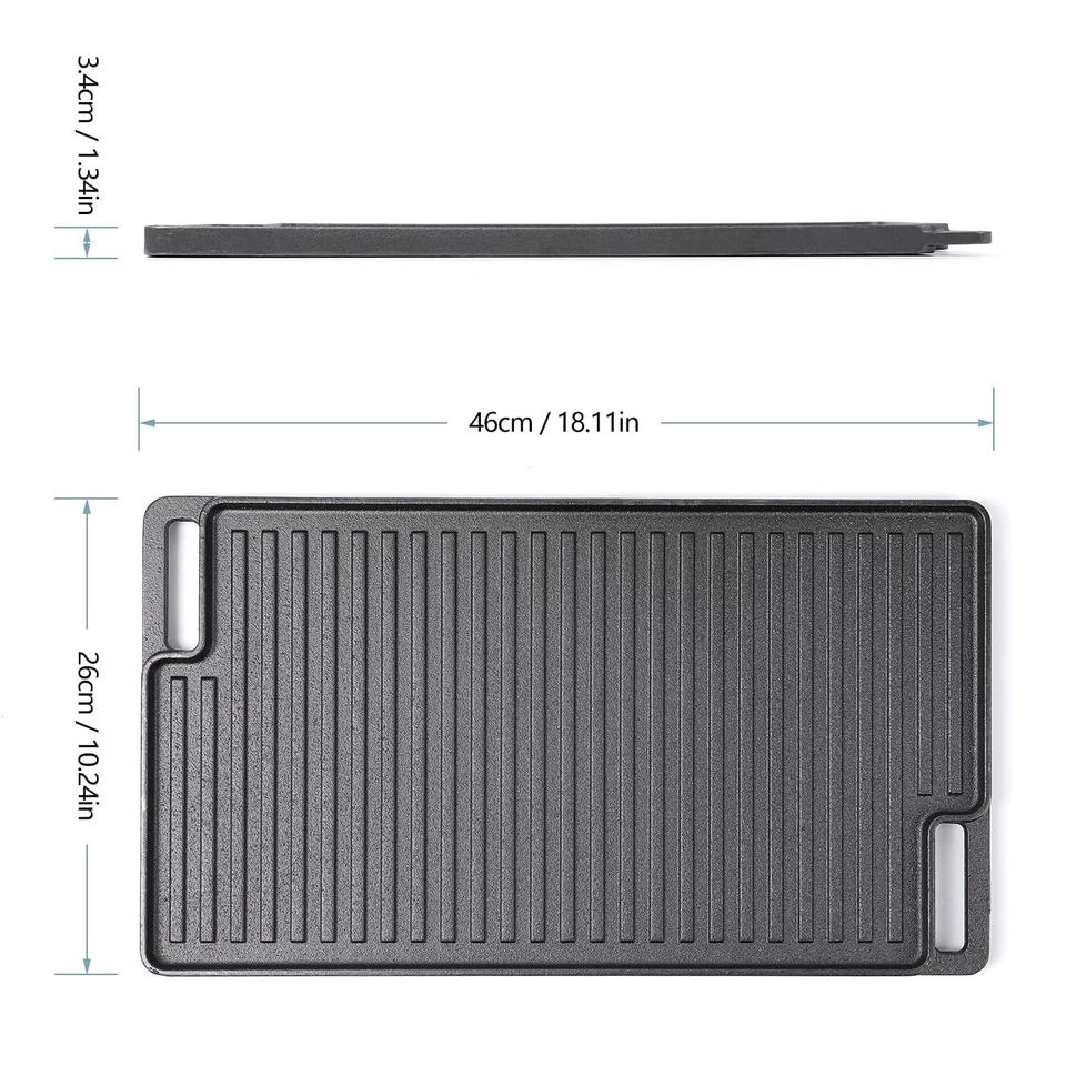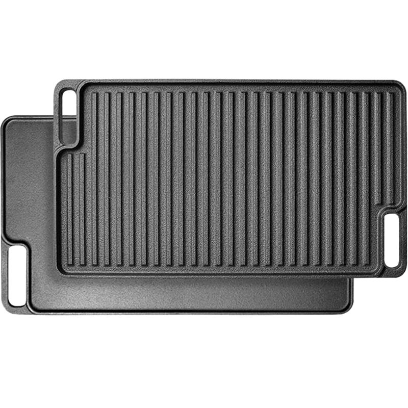 Plaque de cuisson réversible en fonte pré-assaisonnée de 4,3 kg, essentielle pour les amateurs de barbecue, idéale pour le camping en plein air