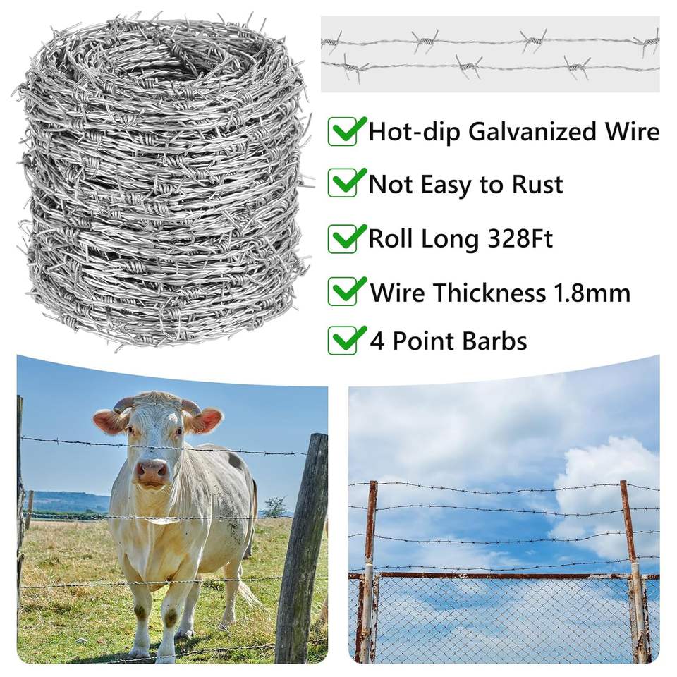 Fil barbelé galvanisé à chaud, rouleau de fil barbelé résistant et flexible pour l'artisanat, le baseball et le jardinage