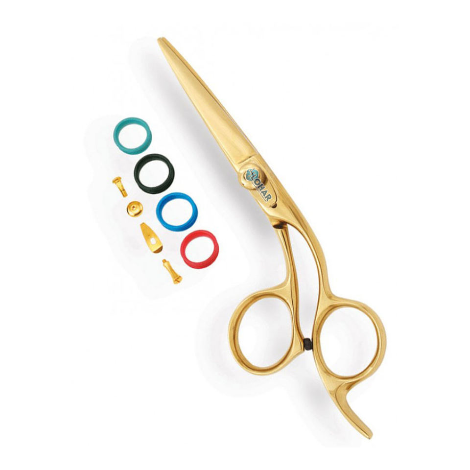 Ciseaux à cheveux avec clé à vis, revêtement titane bleu.