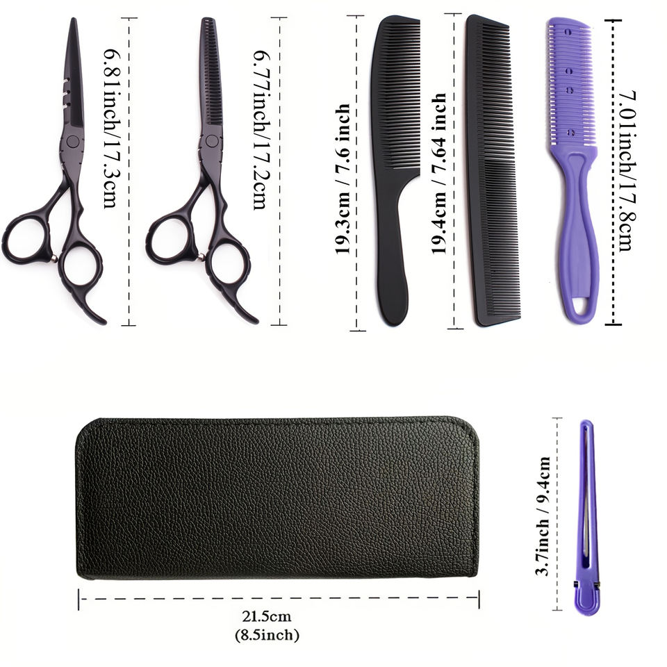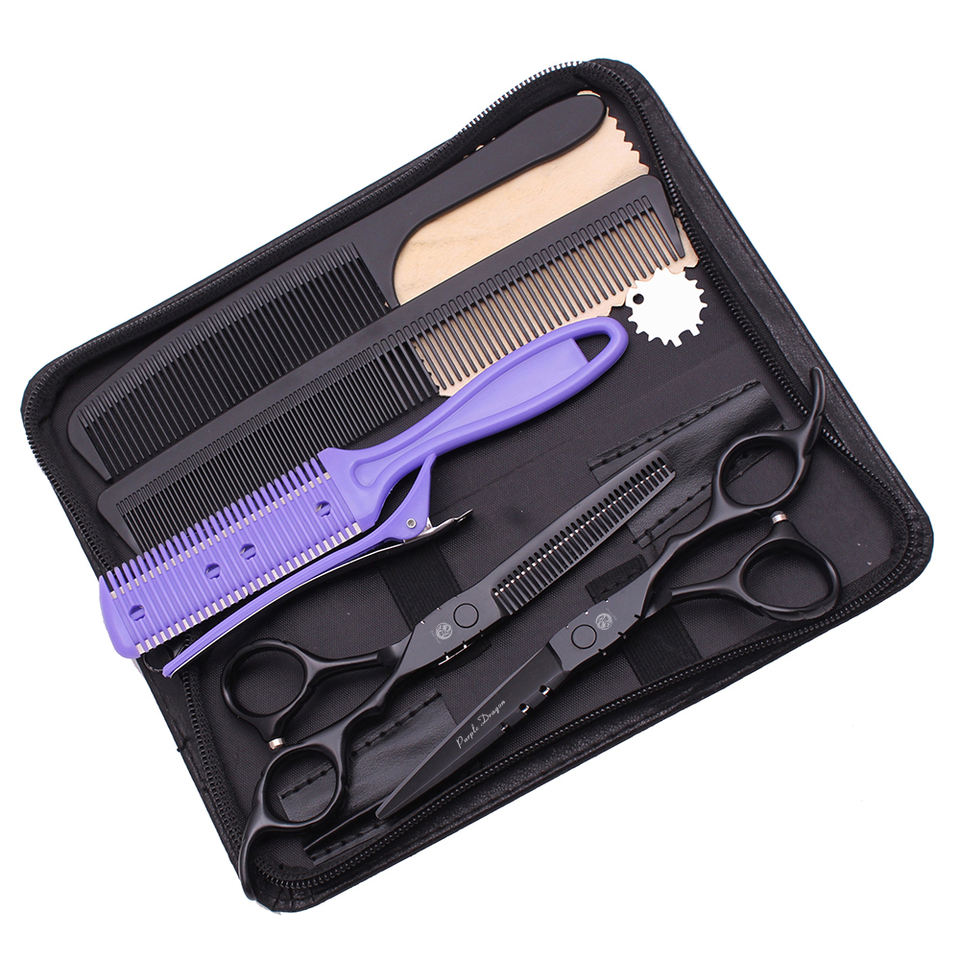 Ensemble de ciseaux de barbier en acier japonais, qualité professionnelle pour salon de coiffure, ciseaux droits et effilants, kit complet de coiffure avec peigne
