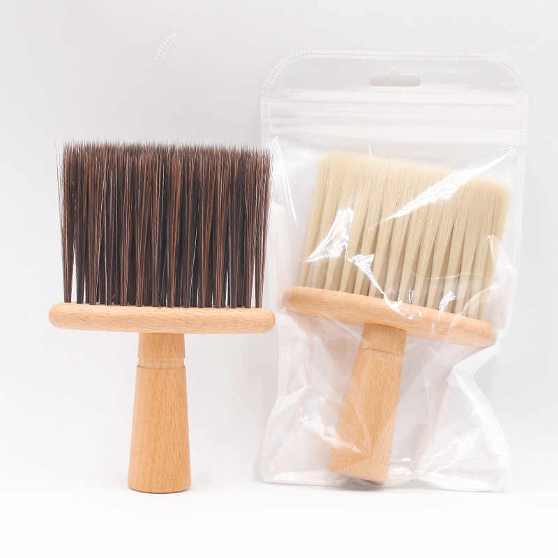 Brosse de barbier en bois de hêtre, douce, plumeau, pour le visage, en Fiber douce, nettoyage des cheveux, plate et antidérapante, outil de coiffure pour coupe