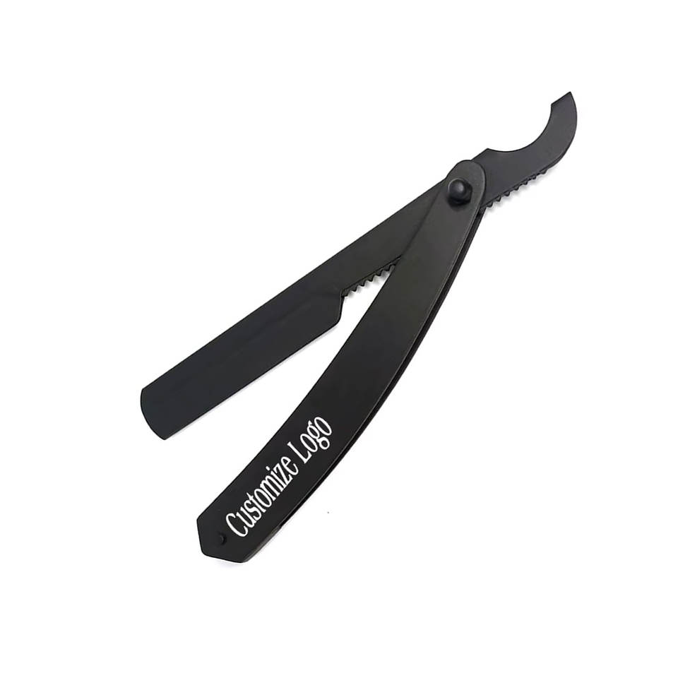 Rasoir turc Barber noir mat avec étui en cuir, rasoir droit à lame traversante, personnalisation du logo